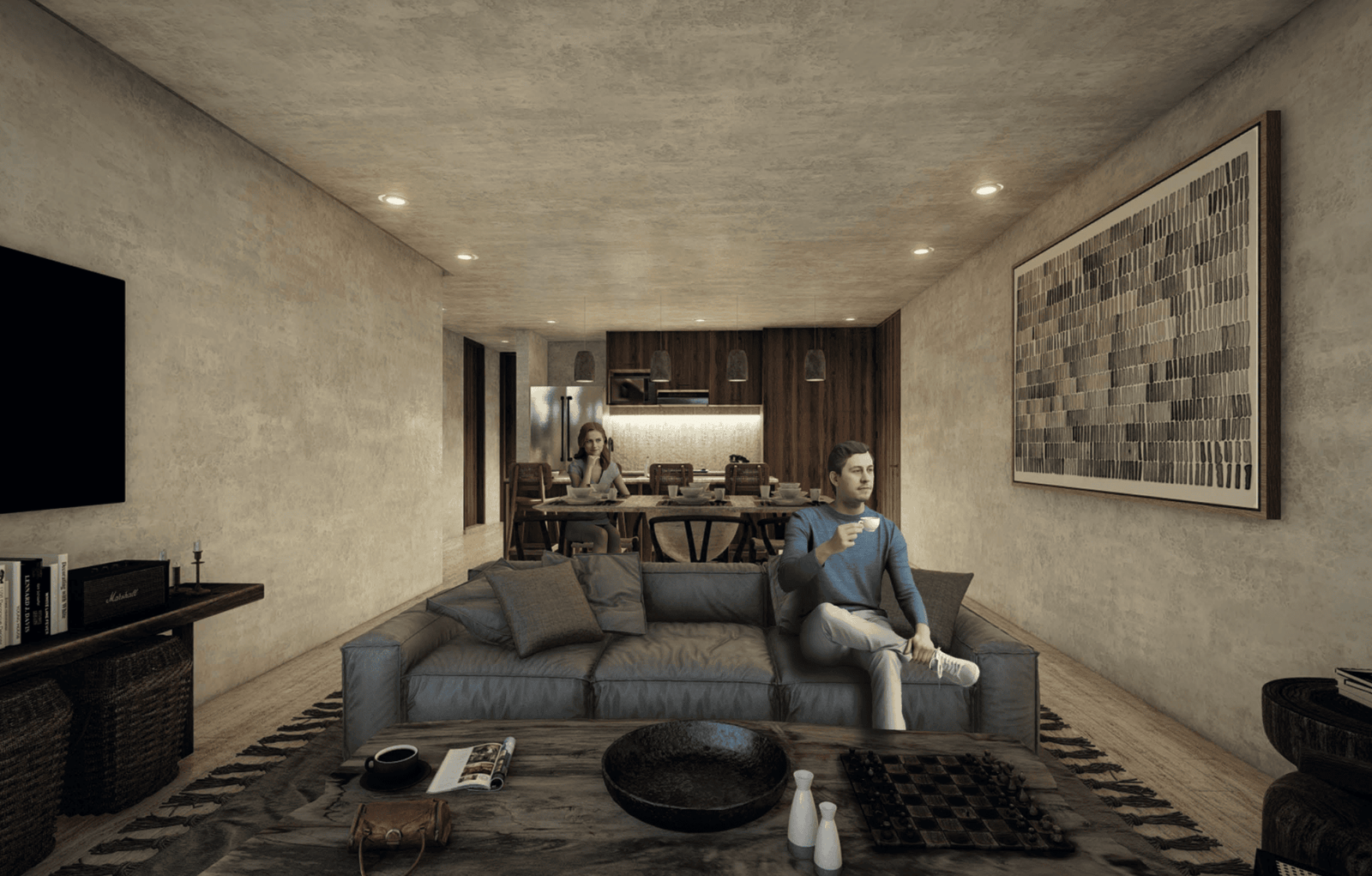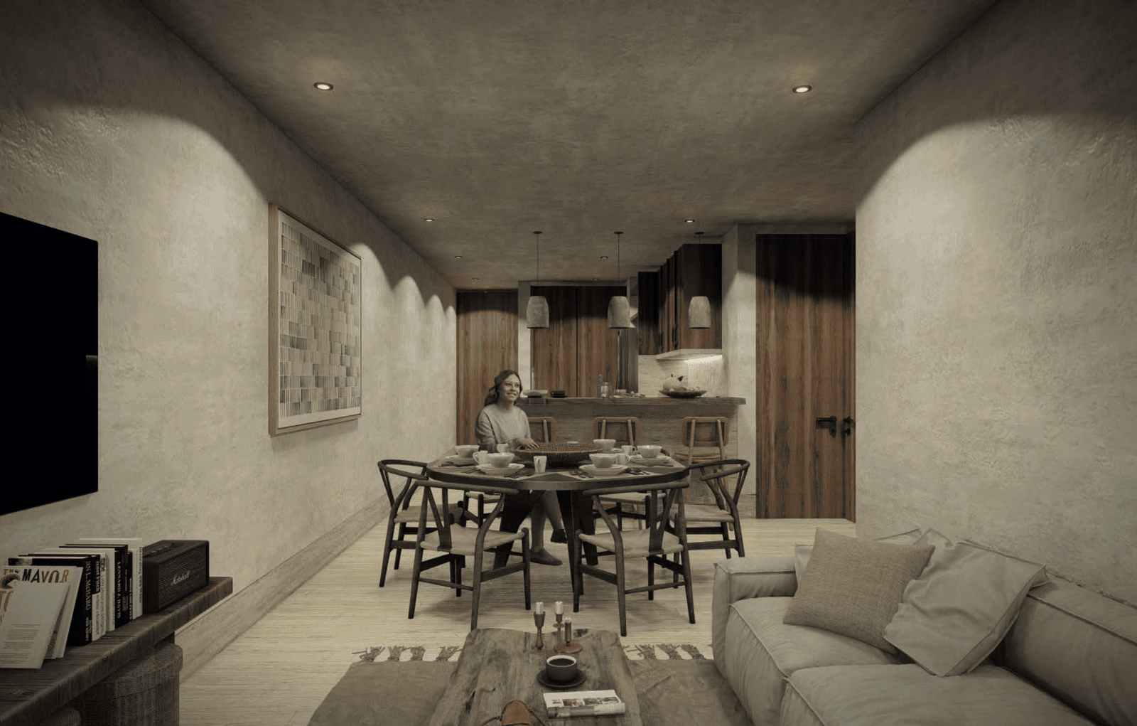 - Calidez brutalista y profundidad material